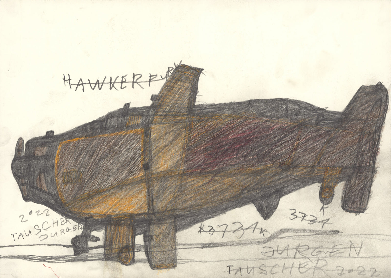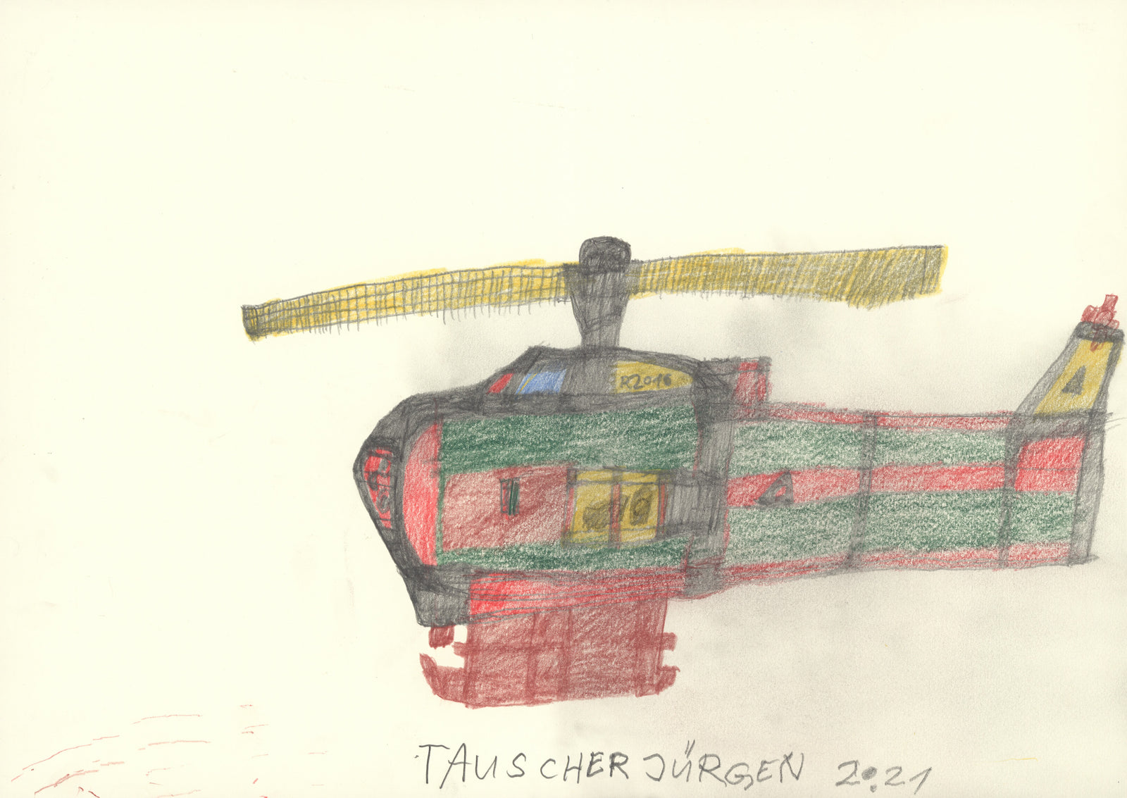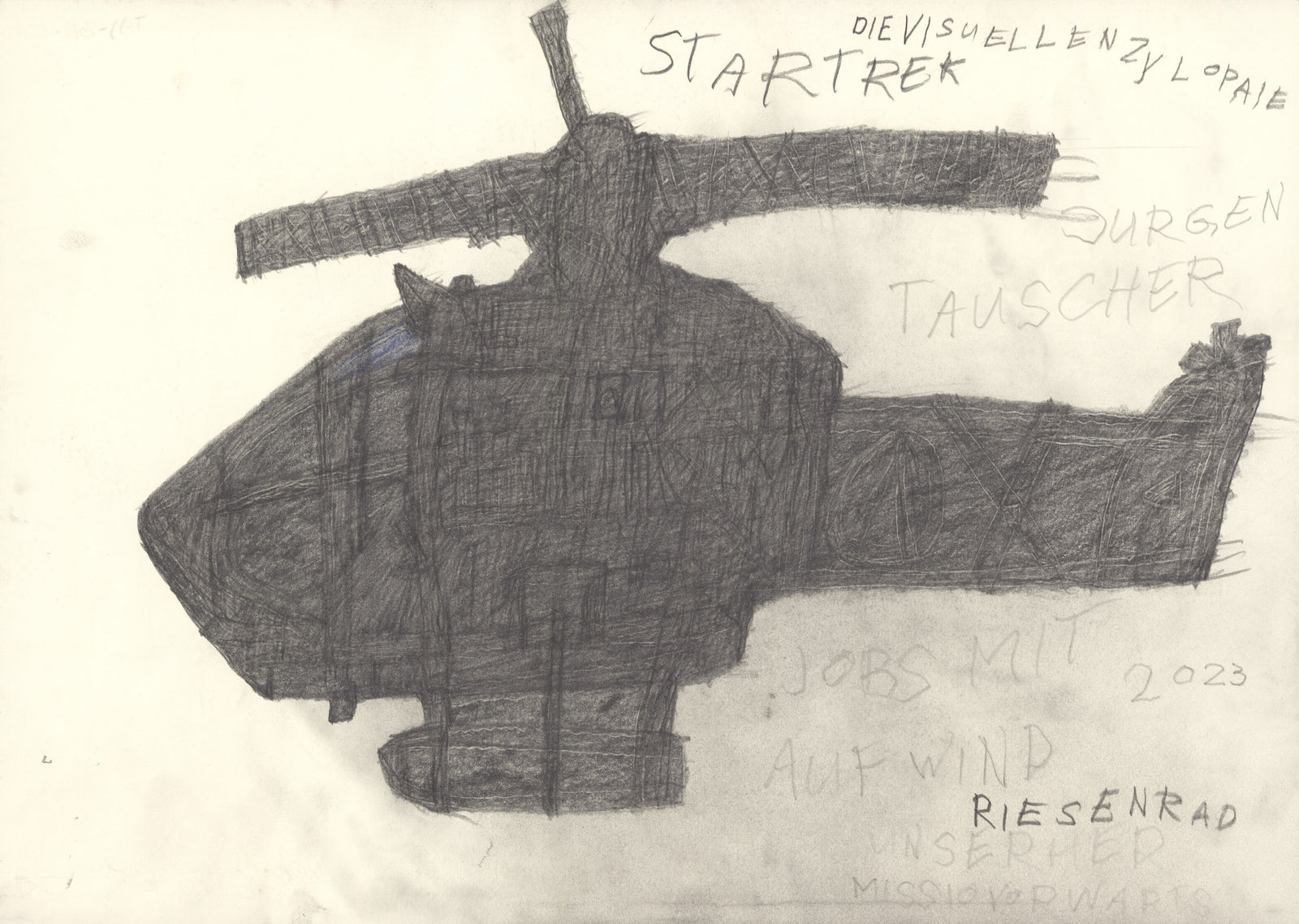 Jürgen Tauscher was born in 1974 in St. Pölten, Austria, and has been living in the House of Artists in Gugging since 2012. Tauscher is interested in technology, action, adventure and science fiction – astronaut capsules, airplanes and helicopters are his main themes. The artist works primarily with pencil on paper – only occasionally he uses coloured pencils. In addition to all the means of transportation such as airplanes, spaceships and special cars, now and again you can also detect buildings. The cathedrals, houses or skyscrapers are integrated into his pictures as backdrops or arranged as main motifs. His works can be found in the Hannah Rieger Collection, Austria, and in the Diamond Collection, Austria.