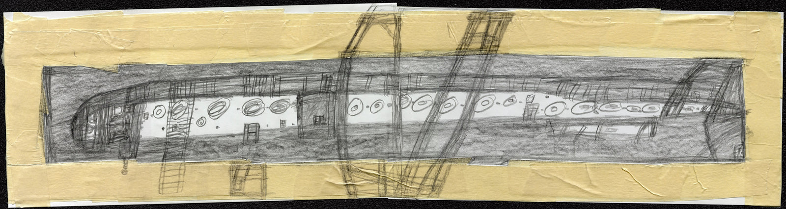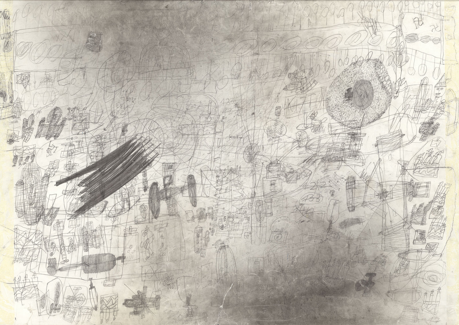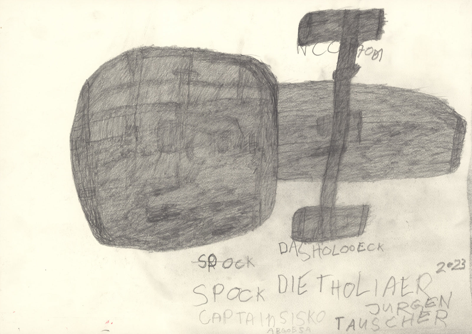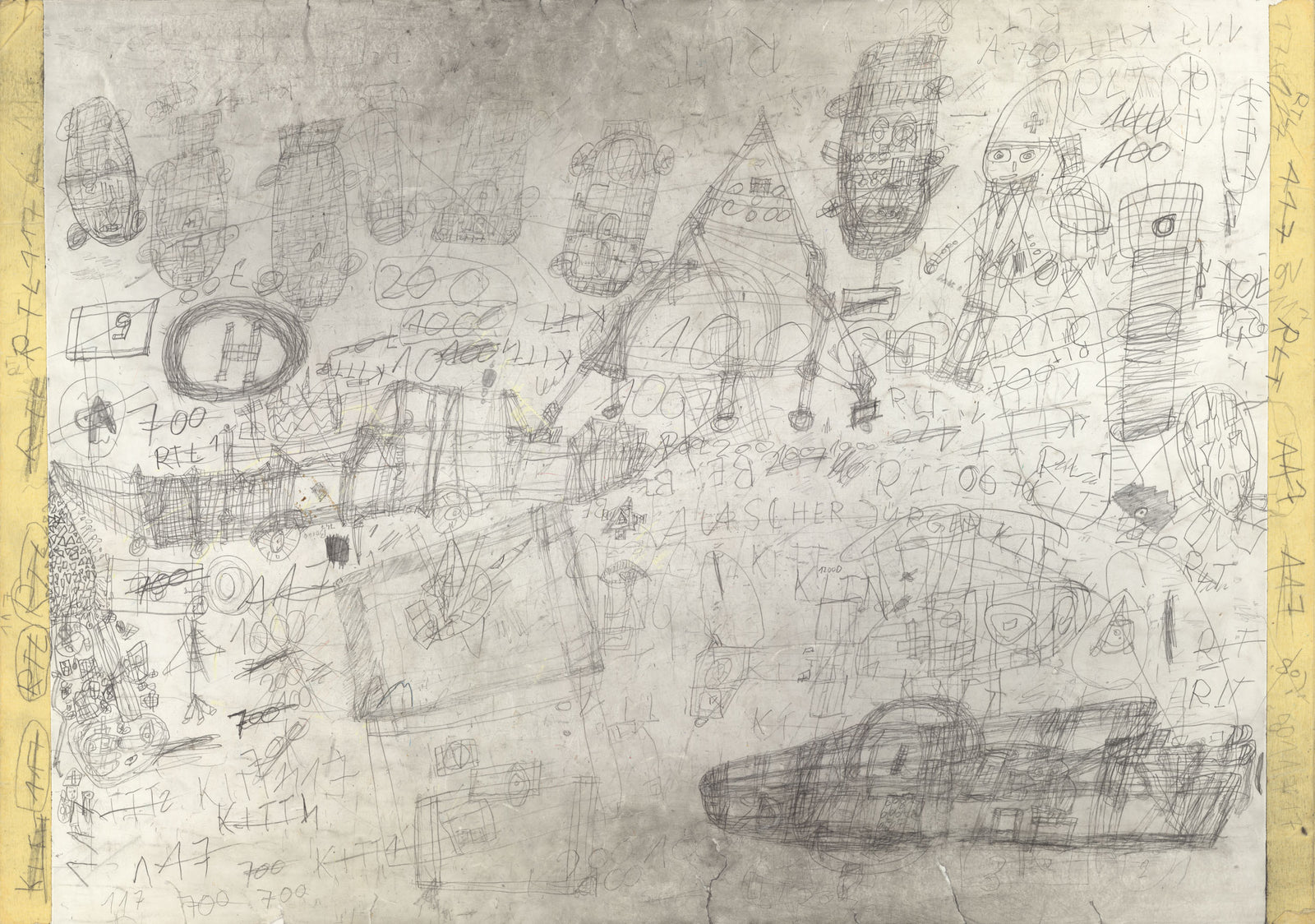 Jürgen Tauscher was born in 1974 in St. Pölten, Austria, and has been living in the House of Artists in Gugging since 2012. Tauscher is interested in technology, action, adventure and science fiction – astronaut capsules, airplanes and helicopters are his main themes. The artist works primarily with pencil on paper – only occasionally he uses coloured pencils. In addition to all the means of transportation such as airplanes, spaceships and special cars, now and again you can also detect buildings. The cathedrals, houses or skyscrapers are integrated into his pictures as backdrops or arranged as main motifs. His works can be found in the Hannah Rieger Collection, Austria, and in the Diamond Collection, Austria.