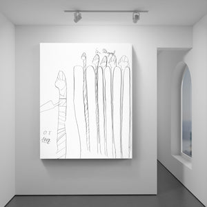 "A photographer" by Oswald Tschirtner is a striking edding marker on canvas drawing that exemplifies the artist’s signature minimalism and psychological clarity. Composed of just a few deliberate lines, the work distils the figure of a photographer into its most essential form: flattened, abstracted, yet instantly recognisable.